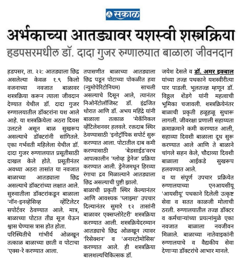 As a Paediatric surgeon in Pune, he regularly treats newborn conditions like pyloric stenosis, intestinal blockages, and congenital abnormalities with specialized care.